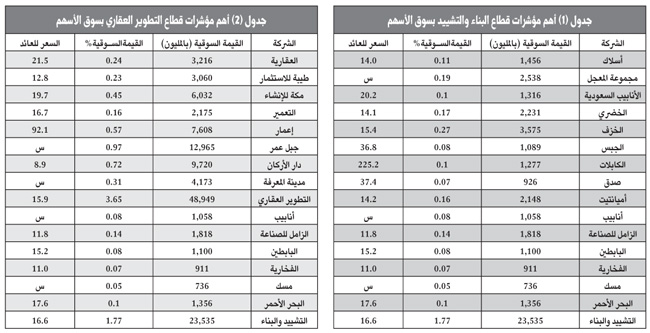 وبصفة عامة، أحرز مؤشر قطاع البناء والتشييد ارتفاعاً بنسبة 2.2 % خلال السنة الماضية، في حين أحرز قطاع التطوير العقاري صعوداً بنسبة 8.6 %. لكن التساؤل المهم هنا: هل هذه القيمة السوقية تعبّر عن حجم قطاع الإنشاءات السعودي؟ وهل هذا الربح لها كاف ومقبول في ضوء الزخم الذي يشهده القطاع منذ سنوات؟ وهل يُعتبر ذلك مقبولاً لسوق يمتلك (36) مقاولاً مصنفاً من الدرجة الأولى؟