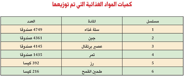 غطت الإعانات الغذائية السعودية منطقة بنادر وشبيلي السفلى بحسب التوزيع التالي: