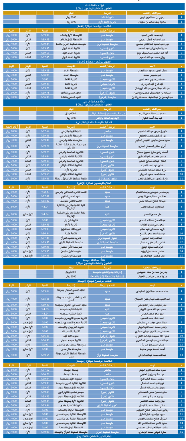 بيان بالمرشحين والمرشحات لجائزة معالي الأمير خالد بن أحمد السديري حسب الأعداد والضوابط المعتمدة للجائزة