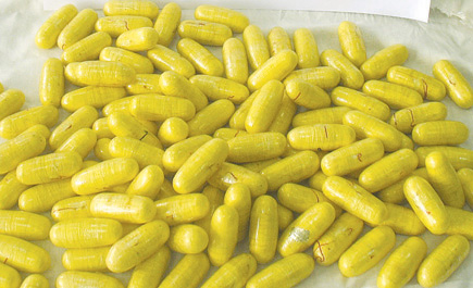 الجزيرة - المحليات أحبط رجال الجمارك بمطار الملك خالد الدولي بالرياض تهريب 85 كبسولة تزن 634.3 جرام وتحوى مادة الهيرويين المخدر داخل أحشاء مسافر آسيوي.أوضح ذلك مدير عام جمرك مطار الملك خالد الدولي محمد بن عبدالله الدخيل منوهاً بجهود رجال الجمارك الذين يبذلون جهوداً متميزة للحيلولة من دخول