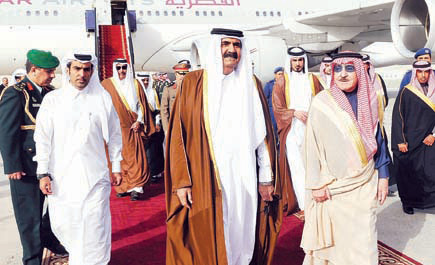 الجزيرة - واس وصل صاحب السمو الشيخ حمد بن خليفه آل ثاني أمير دولة قطر الشقيقة إلى الرياض أمس. وكان في استقبال سموه بمطار قاعدة الرياض الجوية صاحب السمو الملكي الأمير سطام بن عبدالعزيز أمير منطقة الرياض. كما كان في استقباله صاحب السمو الأمير الدكتور عبدالعزيز محمد بن عياف