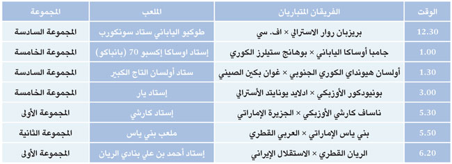 وتقام ضمن منافسات اليوم لحساب نفس الجولة المباريات حسب الجدول.