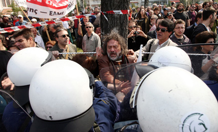 * قوات مكافحة الشغب اليونانية تقبض على أحد المحتجين على سياسية التقشف أثناء الاستعراض العسكري بمناسبة ذكرى استقلال اليونان.. رويترز * * * * رئيس الوزراء الكندي ستيفن هاربر يزور بعض المناطق المتضررة من التسونامي الذي ضرب اليابان في العام الماضي وفي الخلف بقايا قارب صيد متضرر