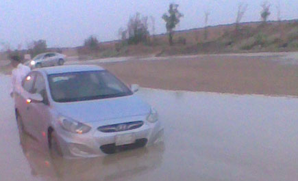 عنيزة – خالد الروقي: مع هطول الأمطار خلال هذه الأيام على محافظة عنيزة واجه قائد مركبة من نوع (هيونداي إكسنت) موقفاً حرجاً وذلك بعد وقوع مركبته بالمنطقة الموازية للطريق الرئيسي التي تمتاز بالتربة الطينية إثر خروجه من مزرعته الواقعة على طريق المذنب، ولم يتوقع السائق أن تمتص مياه الأمطار