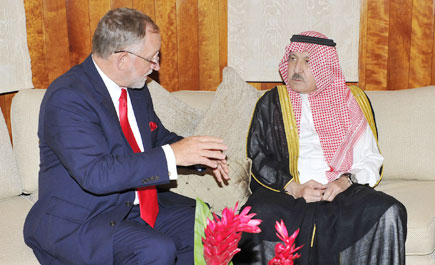 الرياض - روضة خريم - واس تشرف بالسلام على خادم الحرمين الشريفين الملك عبدالله بن عبدالعــــزيز آل سعود حفظه الله في روضة خريم أمس معالي الدكتـــــور عدنان بن عبدالله المزروع بمناسبة صدور الأمر الملكي الكريم بتعيينه مديراً لجامعة طيبة بالمرتبة الممتازة. وقد هنأه الملك المفدى
