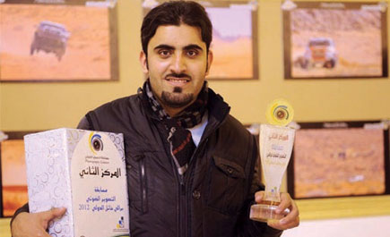 حائل - حمود اللحيدان حقَّق المصوّر سليمان العودة عضو مجموعة حائل للتصوير الضوئي وأحد أبناء حائل المركز الثاني بمسابقة التصوير الضوئي لرالي حائل الدولي 2012 والتي ينظّمها قسم التصوير الضوئي بالمعهد الصناعي الثانوي الثاني بجدة بعد أن تنافس على هذه المسابقة 45 مصوراً. مبروك.