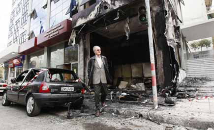 آثار انفجار قنبلة موقوتة زرعت في أحد المبانيذ بالعاصمة اليونانية أثينا من دون وقوع أي إصابات بشرية.. رويترز *** جنود من الجيش التايلندي يقفون أمام أحد المباني المتضررة من الهجمات الأخيرة في المحافظات الانفصالية الجنوبية حيث عززت قوات الأمن تواجدها في هذه المناطق ..رويترز