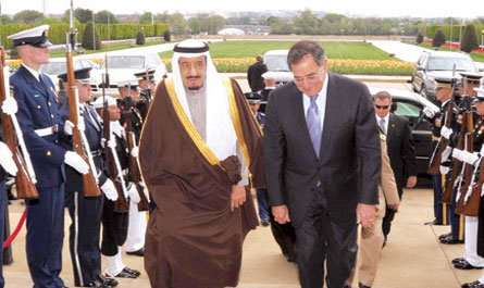 اجتمع صاحب السمو الملكي الأمير سلمان بن عبدالعزيز وزير الدفاع في واشنطن أمس مع معالي وزير الدفاع الأمريكي ليون بانيتا. وفي بداية الاجتماع رحب معاليه بسمو الأمير سلمان بن عبدالعزيز في زيارته الرسمية الحالية للولايات المتحدة الأمريكية، متمنياً لسموه طيب الإقامة. >>