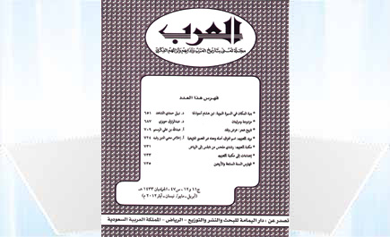 مجلة العرب مجلة تعنى بتاريخ العرب وآدابهم وتراثهم الفكري أسسها حمد الجاسر سنة 1386هـ.. وعددها الجديد يتضمن العديد من المواد الثقافية ومنها: - بنية المكان في السيرة النبوية: ابن هشام أنموذجاً للدكتور نبيل حمدي الشاهد. - مزدوجة ومرثيتان للدكتور عبد الرزاق جويزي.