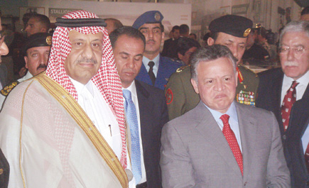 الجزيرة - المحليات: قام صاحب السمو الملكي الأمير خالد بن سلطان بن عبد العزيز نائب وزير الدفاع بزيارة لمعرض سوفكس 2012 أمس الثلاثاء والذي تقام فعالياته في المملكه الأردنية الهاشمية حيث كان في استقبال سموه والوفد المرافق له في مقر المعرض سمو الامير فيصل ابن الحسين ورئيس مجلس النواب الاردني