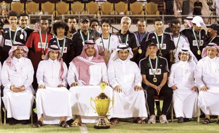 كتب - سلطان الجلمود : توج عضو الاتحاد السعودي المؤقت لكرة القدم أحمد الخميس أمس فريق ناشئي الشباب لكرة القدم بكأس بطولة الدوري الممتاز لكرة القدم بعد حصولهم على المركز الأول بـ44 نقطة, وتم التتويج بالكأس بعد مناورة أقامها الفريق الناشئين في ملعب الأمير خالد بن سلطان بالنادي.