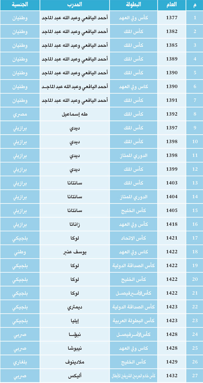 نجح فريق الأهلي الذي يحتل المركز الثالث في سلم البطولات السعودية بعد الهلال والاتحاد في تحقيق 27 بطولة خلال تاريخه.. كان آخرها كأس الملك للأبطال الموسم الماضي، وهي البطولة التي يبحث عن الحفاظ على لقبها الليلة عندما يواجه النصر.. وهنا بيان بالبطولات الأهلاوية الرسمية.