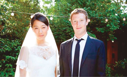 تزوج مارك زوكربرج المؤسس المشارك لموقع فيسبوك للتواصل الاجتماعي صديقته بريسيلا تشان السبت معلنا زفافه من خلال تحديث حالته على الموقع، و»أعجب» عشرات الآلاف بتغيير زوكربرج حالته والذي كان مصحوبا بصورة للزوجين وهما بملابس الزفاف. رويترز