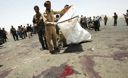 صنعاء - عبدالمنعم الجابري: عشية احتفالات اليمن بمناسبة ذكرى الوحدة وتمهيداً لهذا اليوم، اخترق عنصر ينتمي لتنظيم القاعدة بلباس عسكري عرضاً عسكرياً وسط سرية من الجنود خلال تمارين لعرض عسكري في ميدان السبعين في صنعاء أمس، وفجر نفسه مخلفاً 96 قتيلاً و300 جريح. وذكر مصدر عسكري أن الانتحاري
