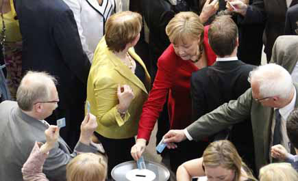 * المستشارة الألمانية أنجيلا ميركيل تدلي بصوتها بخصوص الحمايةِ القانونيةِ في القانونِ الانتخابيِ أثناء جلسة مجلس البرلمان الأدنى الألماني، في برلين...رويترز *** * رئيس وزراء إيطاليا ماريو مونتي يَتْركُ قمّةَ زعماءِ الاتحاد الأوربي حيث ناقشَ الزعماءُ الأوروبيونُ الطرقُ لإنْعاش