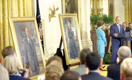 واشنطن - (د ب أ): عاد الرئيس الأمريكي السابق جورج دبليو بوش وزوجته السيدة الأولى السابقة إلى واشنطن الخميس لإزاحة الستار رسميا عن لوحتين لهما سيجري وضعهما في البيت الأبيض وتولى الفنان جون هوارد ساندن رسم اللوحتين الرسميتين من أجل تعليقهما بجوار كل رؤساء الولايات المتحدة السابقين. ورسم