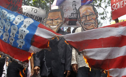 * فلبينيون يحرقون علم الولايات المتحدة أمام سفارة واشنطن في مانيلا احتجاجاً على التدخل الأمريكي في شؤون بلادهم.. (رويترز) *** * الخبير المالي الهندي الذي حكمت عليه محكمة الجنايات التايلاندية بالسجن 10 سنوات وغرامة 36 مليون دولار بسبب الاختلاس في قضية مرتبطة ببدء الأزمة المالية