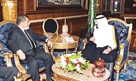 استقبل خادم الحرمين الشريفين الملك عبدالله بن عبدالعزيز آل سعود حفظه الله في قصره بجدة مساء أمس أخاه فخامة الرئيس محمد مرسي رئيس جمهورية مصر العربية الشقيقة وقد عقد الملك المفدى وفخامة الرئيس المصري جلسة مباحثات رحب في بدايتها خادم الحرمين الشريفين الملك عبدالله >>