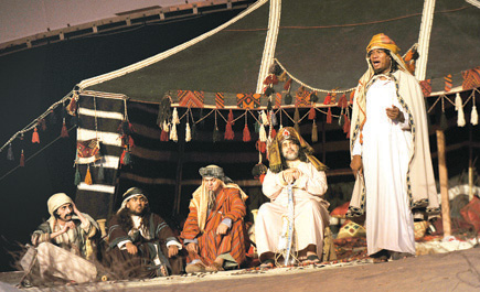 الطائف - فن: حل أسطورة الحب والحرب في الجاهلية عنترة بن شداد ضيفاً على النسخة السادسة من سوق عكاظ الذي افتتحه أمير منطقة مكة المكرمة الأمير خالد الفيصل في محافظة الطائف، إذ استعرضت المسرحية نشأة عنترة في بني عبس، كعبد ينشد حريته حتى نالها بشجاعة متفردة، جعلت من بطولاته أسطورة في روايات