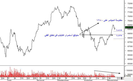 الجزيرة - هشام الوليعي: أغلق سوق الأسهم السعودية تداولات بداية الأسبوع على مستوى 6919 نقطة, مسجلا تراجعا بمقدار 22.90 نقطة تعادل، نسبة 0.33 في المائة, وقد افتتح المؤشر العام بداية الجلسة لينخفض إلى ما دون 6900، قبل أن يقلص خسائره تدريجيا، مع استمرار جني الأرباح لبعض القطاعات من الأربعاء