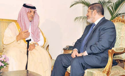 القاهرة - سجى عارف - علي فراج بحث صاحب السمو الملكي الأمير سعود الفيصل وزير الخارجية مع الرئيس المصري محمد مرسي في القاهرة أمس تعزيز التعاون المشترك بين المملكة ومصر، واستعرضا جهود اللجنة الرباعية لحل الأزمة السورية ودور المملكة لحل هذه الأزمة.من جهته أكد سمو وزير الخارجية على ضرورة وجود