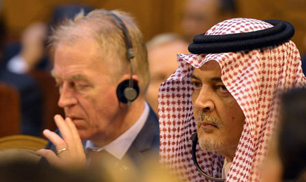 أكد صاحب السمو الملكي الأمير سعود الفيصل وزير الخارجية ضرورة وجود إرادة دولية جادة تضع حداًسريعاً للمأساة الإنسانية المتفاقمة في سورية وتمهد الطريق لإزالة طغيان النظام الجائر والبدء في عملية انتقال السلطة، بالاستناد إلى قرار دولي واضح وصريح من مجلس الأمن. وأعرب >>