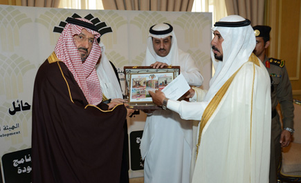 حائل - عبد العزيز العيادة: رعى صاحب السمو الملكي الأمير سعود بن عبدالمحسن بن عبدالعزيز، أمير منطقة حائل مراسم تسليم دعم الهيئة العليا لتطوير منطقة حائل المباشر للجنة أسر السجناء والمفرَّج عنهم، وبرامج الأسر المنتجة في لجان التنمية الاجتماعيَّة بالمنطقة، وتسليم المستفيدين الأوائل من برنامج