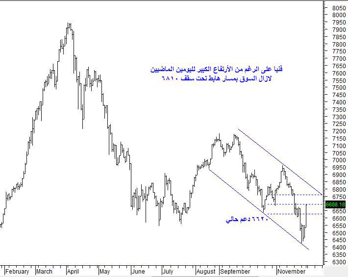 الجزيرة - هشام الوليعي: أنهى سوق الأسهم السعودية تداولات بداية الأسبوع على مستوى 6688.18 نقطة, مسجلاً ارتفاعاً كبيراً بواقع 115 نقطة تعادل نسبة 2.37 في المائة, وواصل سوق الأسهم ارتفاعه القوي لليوم الثاني ليربح في يومين مكاسب قاربت 3.50 في المائة, معوضا خسائر أسبوع كامل خلال جلستي تداول