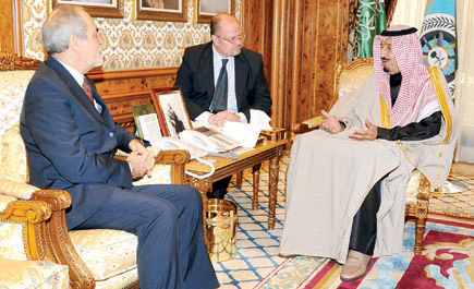 الرياض - واس: استقبل صاحب السمو الملكي الأمير سلمان بن عبدالعزيز آل سعود ولي العهد نائب رئيس مجلس الوزراء وزير الدفاع في مكتبه بالرياض امس سفير جمهورية ايطاليا لدى المملكة فالنتينو سيمونيتي، الذي ودع سموه بمناسبة انتهاء فترة عمله سفيراً لبلاده لدى المملكة. حضر الاستقبال صاحب السمو الملكي