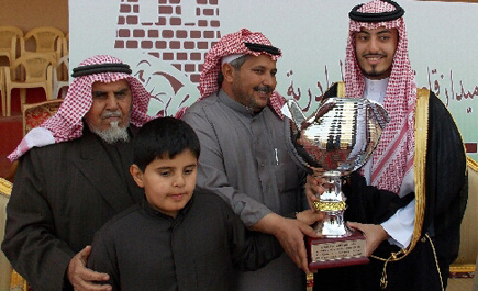 الجنادرية - عايض البقمي: بحضور صاحب السمو الأمير محمد بن سلطان بن محمد عزفت جياد الإنتاج السعودي لحن التفوق والانتصار على مضمار ميدان قلعة الانتاج العريق بالجنادرية عصر الأربعاء الماضي وزفت سفراءها المتأهلين لنهائيات دورة كأس عز الخيل والتي ستقام في 18/ 4/ 2013م بميدان الملك