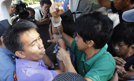 - اعتقلت الشرطة الفلبينية في العاصمة مانيلا مجموعة محتجين أمام سفارة واشنطن. وكان المحتجون ينددون بوجود القوات الأمريكية في البلاد..رويترز * * * - لا تزال المطالبات للحكومة مستمرة في الهند بإيقاع أقسى العقوبات ضد مرتكبي جريمة الاغتصاب. يأتي ذلك عقب حادثة طالبة الطب المغتصبة..