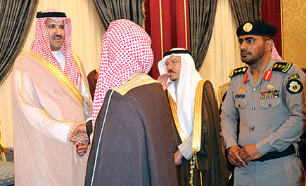 المدينة المنورة - مروان قصاص وعلي الأحمدي: استقبل صاحب السمو الملكي الأمير فيصل بن سلمان بن عبد العزيز أمير منطقة المدينة المنورة صباح أمس في ديوان الإمارة عدداً كبيراً من المشايخ والعلماء ومديري الأجهزة الحكومية والجامعات وأعيان ووجهاء المدينة المنورة وقد رحب سموه بالجميع وشكرهم على حفاوتهم