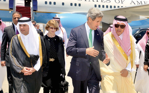 جدة - واس: وصل معالي وزير الخارجية الأمريكي جون كيري إلى جدة أمس في زيارة للمملكة. وكان في استقبال معاليه بمطار الملك عبدالعزيز الدولي صاحب السمو الملكي الأمير سعود الفيصل وزير الخارجية، ومعالي سفير خادم الحرمين الشريفين لدى الولايات المتحدة الأمريكية الأستاذ عادل بن أحمد الجبير، والسفير