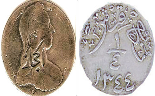 وسجل الملك عبد العزيز ذلك على النقود المسكوكة في سنة 1346هـ/1927م بنوعيها النقود الفضية بفئاتها والنقود المصنوعة من خليط معدني النحاس والنيكل بفئاتها.