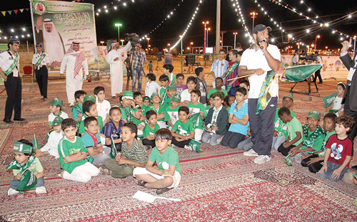 شقراء - محمد الحميضي / تصوير - فيصل الحميضي: احتفل اطفال شقراء في يوم الوطن الذي أعدته اللجنة المنظمة للاحتفال بمشاركة من جامعة شقراء الجهة المنظمة ومحافظة شقراء والبلدية وبعض الدوائر الحكومية، حيث نظم مكتب رعاية الشباب بشقراء حفل الأطفال بتواجد الفرق الترفيهية والملاعب الهوائية والملعب