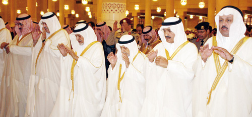 وقد أدى الصلاة مع سمو أمير منطقة الرياض، صاحب السمو الملكي الأمير فهد بن محمد بن عبدالعزيز، وصاحب السمو الأمير بندر بن محمد بن عبدالرحمن، وصاحب السمو الملكي الأمير سطام بن سعود بن عبدالعزيز، وصاحب السمو الأمير نواف بن محمد بن عبدالله رئيس الاتحاد السعودي لألعاب القوى، وصاحب السمو الملكي الأمير مصعب بن سعود بن عبدالعزيز، وصاحب السمو الملكي اللواء الركن فهد بن تركي بن عبدالعزيز نائب قائد القوات البرية وصاحب السمو الأمير عبدالعزيز بن عياف ومعالي أمين منطقة الرياض المهندس عبدالله المقبل وعدد من أصحاب السمو الملكي الأمراء وعدد من المسؤولين وجمع من المواطنين.
