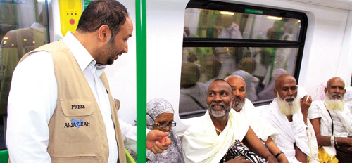 علت البسمة وجوه الحجاج مستخدمي قطار المشاعر خلال تنقلاتهم بين المشاعر وذلك لما لمسوه من راحة كبيرة لمشروع جبار خفف عليهم عناء المسافات الطويلة بين المشاعر. ورافقت «الجزيرة» خلال جولة قام بها أمس حجاج بيت الله في إحدى رحلات القطار المتجهة من محطة مزدلفة إلى محطة جسر الجمرات وتحدَّثت مع عدد منهم مبدين إعجابهم بما شاهدوه من تطوّر مستمر في الخدمات بما فيها القطار ذو العلامة البارزة في تاريخ الحج.