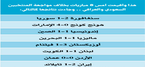 عايد الأخضر الشعب السعودي الكبير بفوز ثمين جدا على نظيره العراقي بهدفين نظيفين حملا توقيعي أسامة هوساوي وناصر الشمراني انفرد بهما تماما بصدارة المجموعة الثالثة بالعلامة الكاملة وقطع بهما شوطا كبيرا جدا نحو بلوغ النهائيات الآسيوية التي ستقام في استراليا صيف 2015م ..