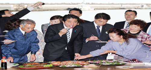 - رئيس الوزراء الياباني يَأْكلُ مأكولات بحرية خلال زيارة له بعد حادثة طوكيو لأحد الموانئ ...... ا ف ب