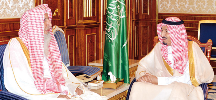 استقبل صاحب السمو الملكي الأمير سلمان بن عبدالعزيز آل سعود ولي العهد نائب رئيس مجلس الوزراء وزير الدفاع في مكتبه بقصر اليمامة أمس سماحة مفتي عام المملكة رئيس هيئة كبار العلماء رئيس إدارة البحوث العلمية والإفتاء الشيخ عبدالعزيز بن عبدالله آل الشيخ الذي قدم للسلام على سمو ولي العهد. حضر الاستقبال صاحب السمو الملكي الأمير محمد بن سلمان بن عبدالعزيز رئيس ديوان سمو ولي العهد المستشار الخاص لسموه.