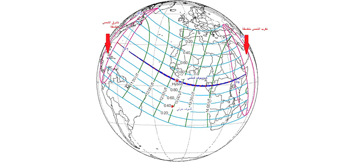 تشهد سماء المملكة الأحد المقبل, كسوفاً جزئياً للشمس, يبدأ من الشمال الغربي للمملكة ثم الغرب والوسط وأخيراً الشرق.