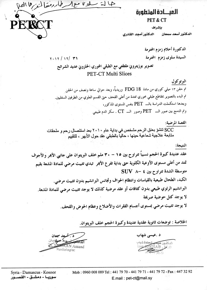 سلوى زمزم أم سورية منعتها الحرب الطاحنة في بلادها من السفر والعلاج لتبقى في الرياض حبيسة مرض السرطان الذي أصابها في عمودها الفقري وألزمها الفراش في انتظار الفرج بعد أن أكد لها الأطباء إمكانية علاجها في المملكة إلا أن ظروف أسرتها المادية وقفت حائلا بينها وبين إدخالها في أحد المستشفيات الأهلية.