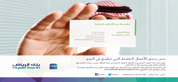 وتطرق هشام العبدلي نائب رئيس أول- مدير المصرفية التجارية ببنك الرياض إلى نشاط بنك الرياض في هذا المجال بقوله»يرعى بنك الرياض منذ سنوات طويلة المؤسسات الصغيرة والناشئة التي أصبح البعض منها من الشركات الكبيرة والناجحة، كما بادر البنك بإنشاء وحدة الأعمال الناشئة في البنك منذ عدة سنوات، وخصص 12 مركزا، يعنى بشكل رئيس في تقديم خدمات نوعية لعملاء البنك من أصحاب المنشآت الصغيرة والمتوسطة سواء الحاليين أو المُحتملين كتقديم مجموعة من الخدمات التمويلية والاستشارية والمصرفية، وكذلك تقديم الإرشادات الائتمانية والاستثمارية اللازمة، إلى جانب ما تضطلع به الوحدة من دور رئيس لتثقيف وتوعية شريحة أصحاب المنشآت الصغيرة والمتوسطة بالسُبل الكفيلة بإنجاح مشاريعهم».