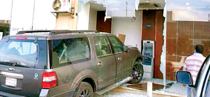 أنقذت عناية الله شخصا دخل غرفة صراف الراجحي لسحب مبلغ من المال ليتفاجأ بدخول سيارة تقتحم الغرفة وتحضن جسده بالجهاز ليتم نقله من قبل شهود العيان للمستشفى، «الجزيرة» تواصلت مع مسئول في المصرف فأوضح بأن الرجل يتمتع بصحة جيدة ولله الحمد.