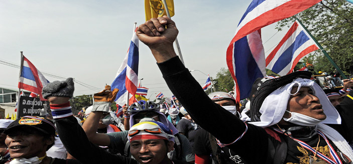 وفي غضون ذلك صرح زعيم الاحتجاج في تايلاند سوثيب ثاوجسوبان أمس الثلاثاء بأن المعركة ضد «الاستبداد البرلماني « لم تنته بعد ، رغم الهدنة الواضحة مع الشرطة بعد أيام من أعمال الشغب . وطالب ثاوجسوبان المتظاهرين باستمرار المعركة «لاستئصال نظام تاكسين» أو تخليص البلاد من النفوذ المستمر لرئيس الوزراء الاسبق الهارب تاكسين شيناواترا . وقال: «يعتقد المواطنون أننا انتصرنا لاننا دخلنا مقر شرطة العاصمة ومقر الحكومة ولكن الطغاة مازالوا في البرلمان والحكومة». وأضاف: «علينا الان أن نتخلص من الطغاة قبل أن نعلن انتصارنا التام»، وذلك في إشارة للبرلمان والادارة المنتخبة لرئيسة الوزراء ينجلوك شيناواترا.
