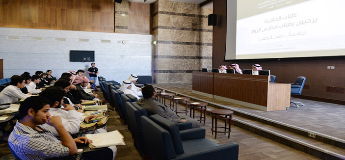 فيما قدم الأستاذ مشاري العمر والأستاذ عبدالله المطرفي ممثلا عمادة القبول والتسجيل بالجامعة شرحاً متكاملاً عن إجراءات القبول والتسجيل وعملية الاختيار والنسب المطلوبة للمفاضلة تمهيداً للقبول في الجامعة.
