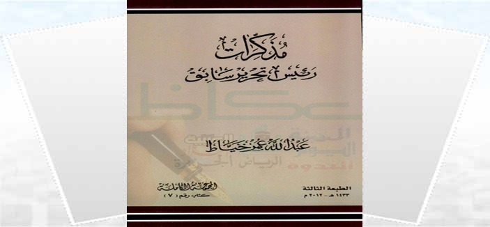 الطبعة الثالثة من كتاب «مذكرات رئيس تحرير سابق» تأليف الأستاذ عبدالله عمر خياط تشتمل على العديد من المواقف التي مر بها في مشواره الصحفي الطويل..