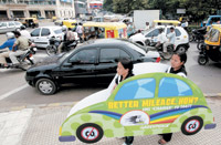 رجال وسيدات هنود يقسمون على عدم استخدام منبه السيارة (الزمور) إلا في الضرورة القصوى وذلك في مدينة مومباي المزدحمة كإجراء اتخذته السلطات للحد من الضجيج، وتنوي السلطات تخصيص يوم للسير بدون منبه (زمور).