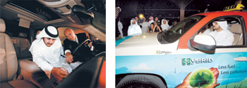 دبي - نادي السيارات:دشن سمو الشيخ مكتوم بن محمد بن راشد آل مكتوم نائب حاكم دبي التشغيل التجريبي لعشر مركبات هجينة صديقة للبيئة (هيبرد)، من نوع شيفروليه (تاهو) و(ماليبو) كما دشن حافلات المواصلات العامة الجديدة ذات الطابقين مجهزة بأحدث التقنيات كمحركات يورو 4 ذات المواصفات البيئية العالية ونظام (I-Shift) الفريد لنقل الحركة وأنظمة متطورة للفرامل وثبات