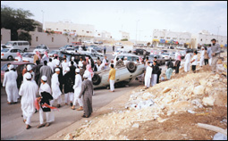 عند وقوع حادث مروري لمركبة يكون من بداخلها في أمس الحاجة للمساعدة والرعاية الطبية المتخصصة من قبل الهلال الأحمر ورجال الأمن، ولكن كيف الوصول إليهم وهذه الحشود الغفيرة من الفضوليين والمتجمهرين تمنع ذلك.علاوة على ماسببوه من إرباك لحركة المرور بكامل الشارع.إليك عزيزي القارئ موقفا حصل لي في أحد الطرق الرئيسية بمدينة الرياض وأترك لك تصور مدى سلبية مثل هذه
